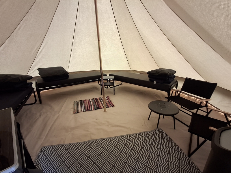 Je hebt bij een Bell tent de beschikking over de volgende faciliteiten en services: