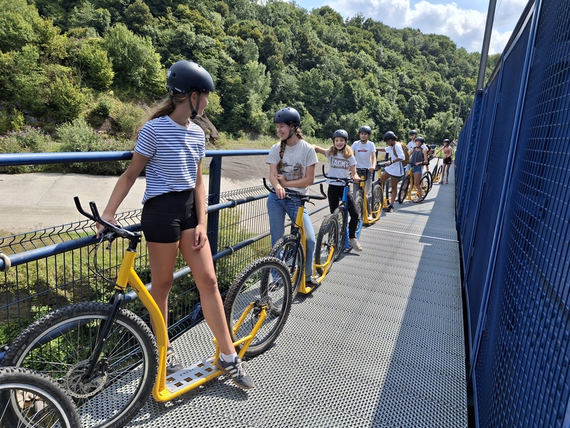 Ervaar de snelheid met je voeten vlak boven de grond als je downhill raast op onze extreme mountainsteps. Maar eerst toeren we lekker langs de rivier over de glooiende fietspaden en genieten we van de prachtige Ardennen.
